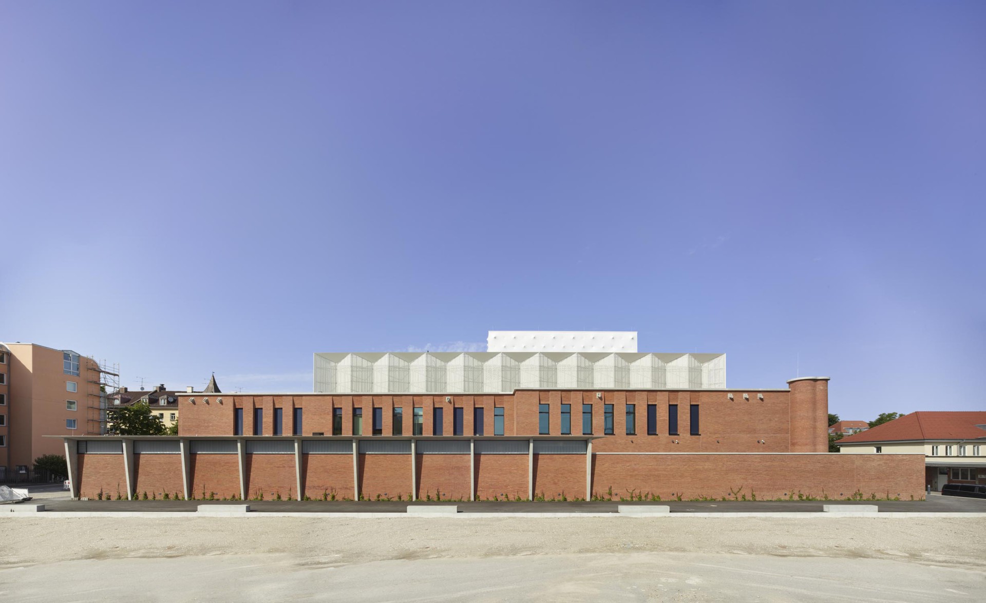 The site is located on the premises of what had previously been Munich’s municipal abattoir and stockyard. In addition, one wing of the existing building complex was to be integrated into the project. The aim was to create a new building that is sufficiently distinctive while also reflecting the history of the place. All in all, a new urban district – with residential buildings, infrastructure facilities and educational and cultural institutions – is currently being created on the approximately 50-hectare site of the old stockyards. The Volkstheater is a focal point by virtue of its size alone, and it forms an edge to the development, delimiting it from the densely built neighbourhood to the west.