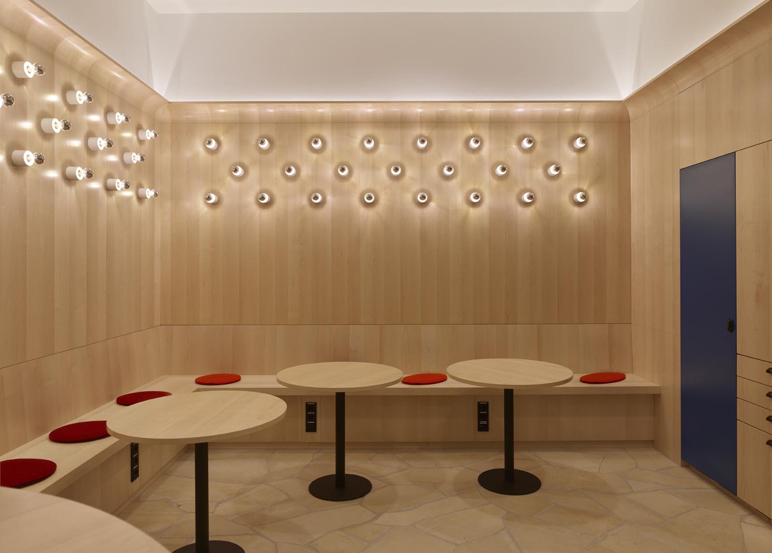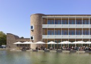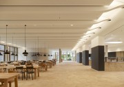 Betritt man das Gebäude von Osten, gelangt man entlang des neu angelegten Teiches über die Terrasse des Mitarbeiterrestaurants in den Speiseraum und anschließend auf die „Magistrale“. Dort befindet sich auch der große Saal für Veranstaltungen wie z. B. Betriebsversammlungen, Seminare oder Tagungen. Der Saal bietet Platz für bis zu 260 Personen. Der Saal am östlichen Eingang, mit direkt zugeordneten Nebenräumen, kann auch unabhängig vom restlichen Gebäude z. B. für Abendveranstaltungen genutzt werden.