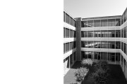 Auf dem östlichen Grundstück befindet sich das Verwaltungsgebäude, das auf einer wabenartigen Grundrissstruktur beruht, die sich um 8 Innenhöfe gruppiert. Es stehen 1.600 Arbeitsplätze zur Verfügung, Konferenzbereiche und ein Mitarbeiterrestaurant. Der Baukörper ist oberirdisch vier- bzw. drei-geschossig und eingeschossig unterkellert.