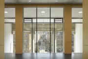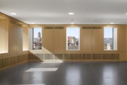 Die Geschosshöhen konnten dadurch neu gewählt werden, freilich in Abhängigkeit zu den Fassadenöffnungen der bestehenden Außenwände. Dadurch konnte eine Ebene zusätzlich in das Gehäuse eingefügt werden. Dort, im ersten Stock ist die gewonnene Stockwerkshöhe relativ niedrig aber für die Unterbringung der Toiletten und Garderoben gut geeignet.