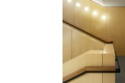 Die Errichtung der gesamten Stahlbetonkonstruktion, selbstragend, bedingte die nicht ganz einfache Sicherung der alten Fassade. Imponierend diese ingenieurtechnische Leistung zu sehen, solange die Außenwände, einer leeren Schachtel gleich, warteten um wieder mit Räumen gefüllt zu werden. Aufgrund der erwähnten Einfügung eines zusätzlichen Geschosses musste die gesamte Haustechnik, Leitungen und Geräte, im Zwischenraum der Salucci-Fassade und dem inneren Raumabschluss geführt werden. Deshalb entschieden wir uns für einen leichten Raumabschluss als Holzkonstruktion, die wie eine Schatulle aus Birke die Innenräume begrenzt. Dieses Material bestimmt den farblichen Eindruck des Hauses. Die Fenster geben über die tiefen Laibungen den Blick auf die Stadt frei. Sie sind wie Vitrinen in die Schatulle eingeschnitten.