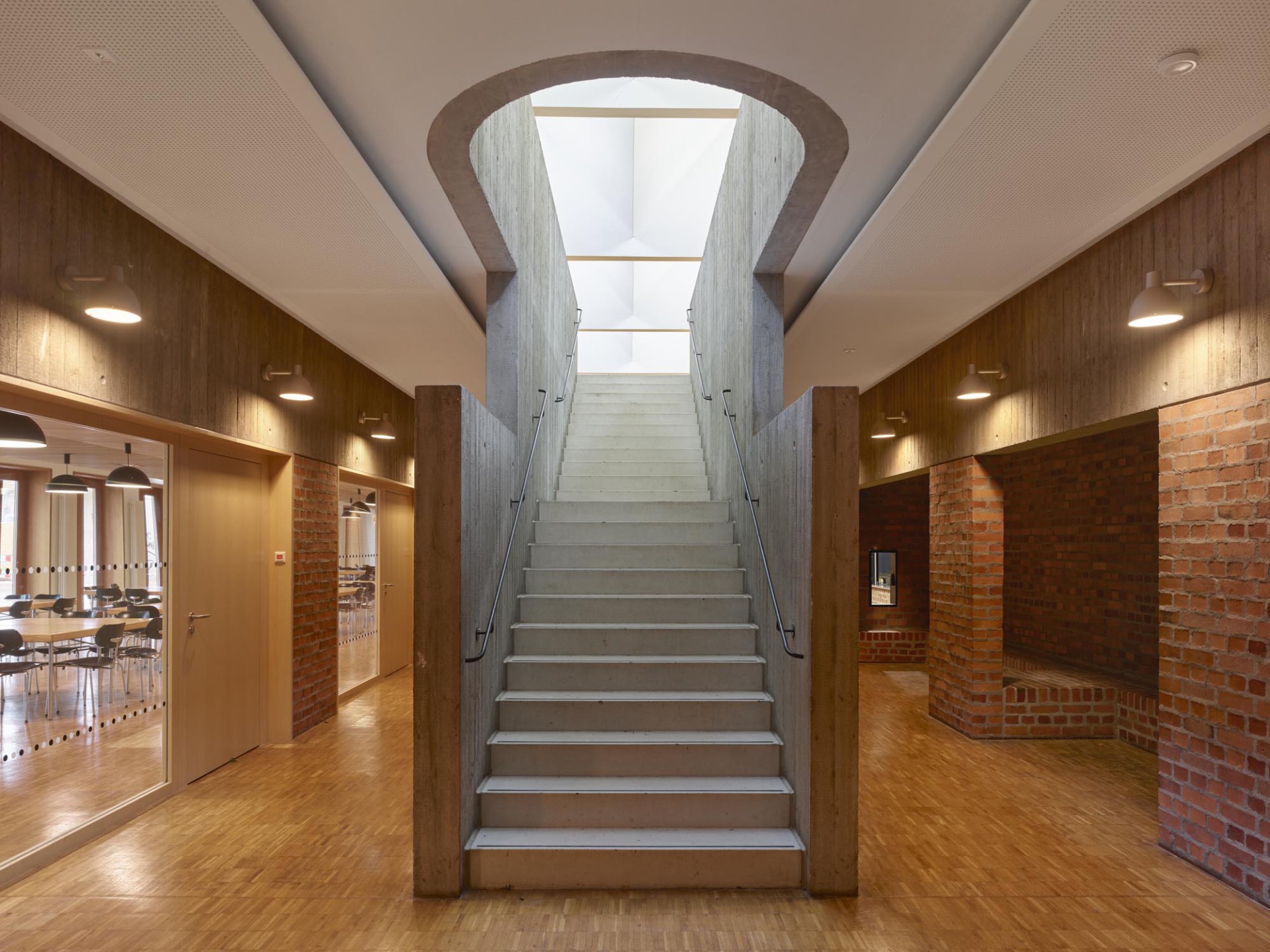 Die hauptsächlichen Veränderungen im Bestand ergaben sich aus den veränderten Brandschutz-Vorgaben und aus der nötigen Vergrößerung der Mensa-Kapazität von bisher 80 auf 400 Essen.