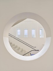 Thanks to the reinforced concrete skeleton construction and load-bearing corridor walls in a circle, the drywall partition walls can be adjusted as needed and adapted to changing educational requirements.